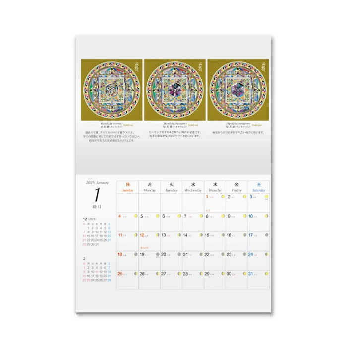 | 仕様 | 壁掛け型カレンダー(A3見開きタイプ) 中綴じ仕様・28P・フルカラー |