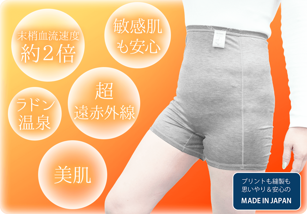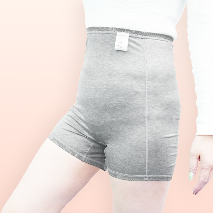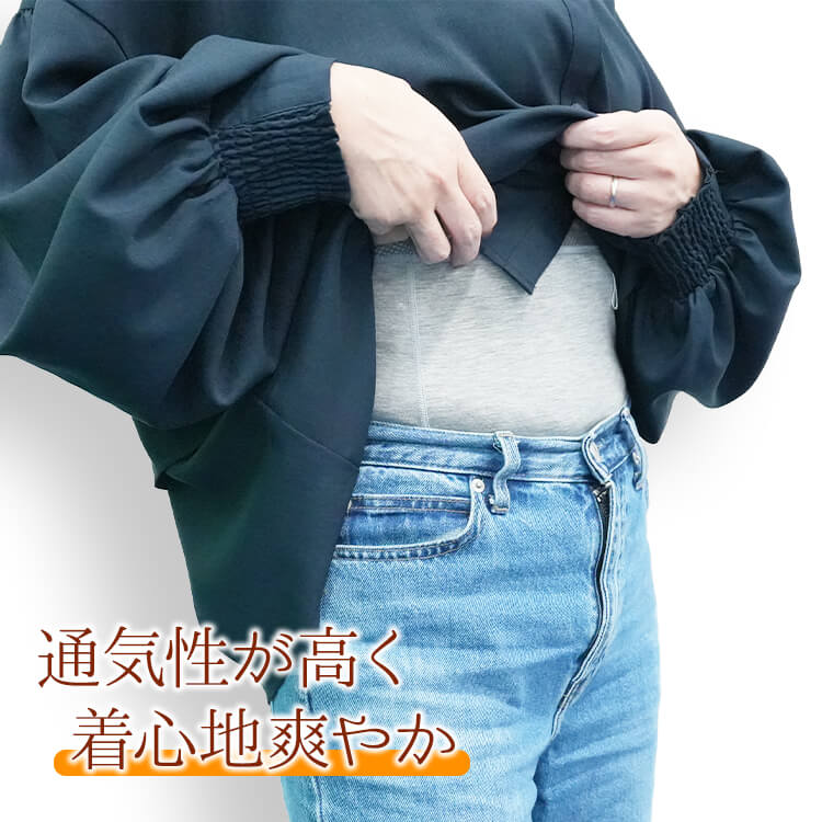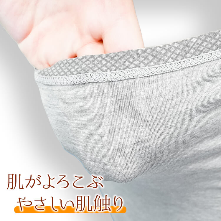 タグも直接肌に当たらない設計に仕上げています。 - 伸縮性が高い糸で動きにフィットするので、ウエストや足口(太腿)の締め付け・食い込みが起こりにくい。