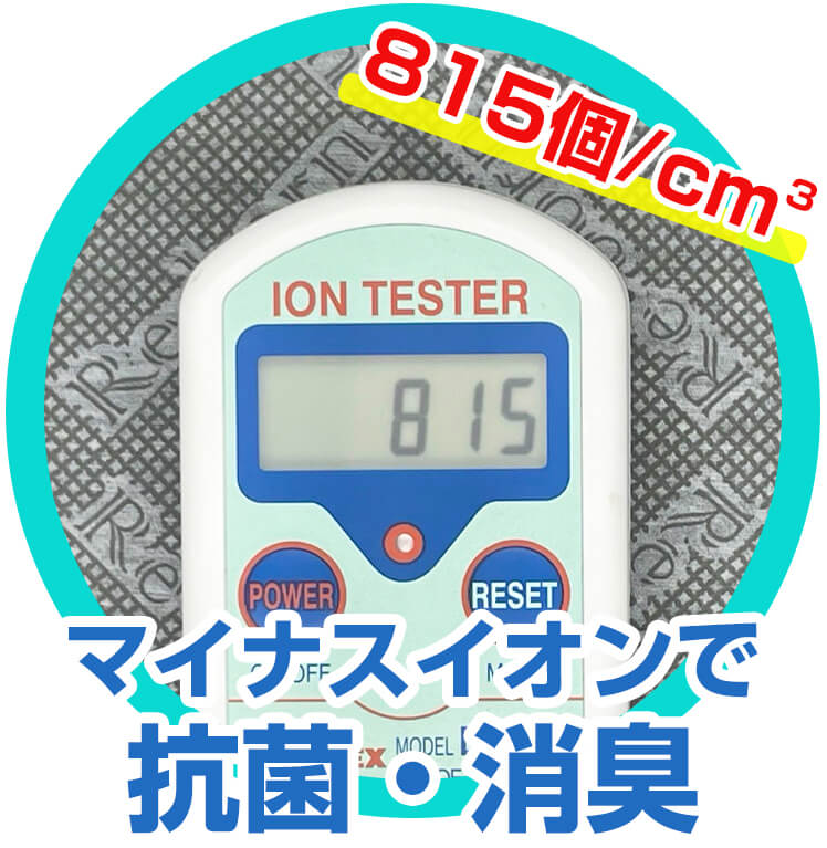 (※)イオンカウンタ EB-17 で計測すると、マイナスイオンが600~900個/㎤発生しています。