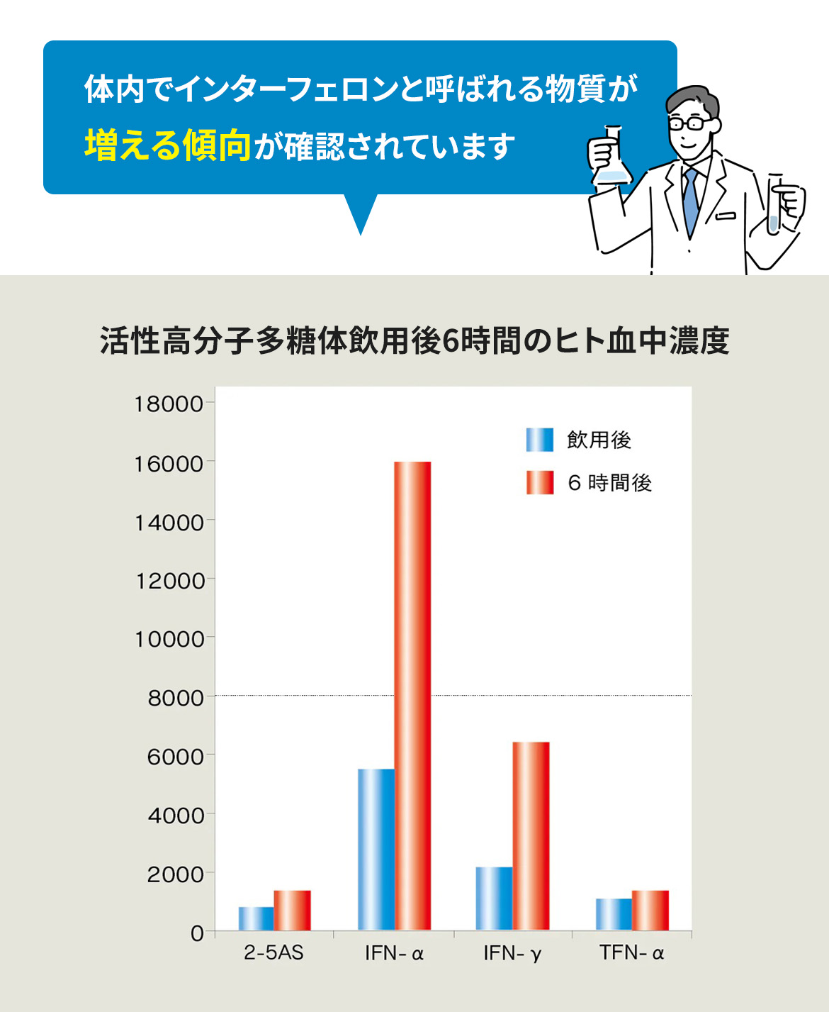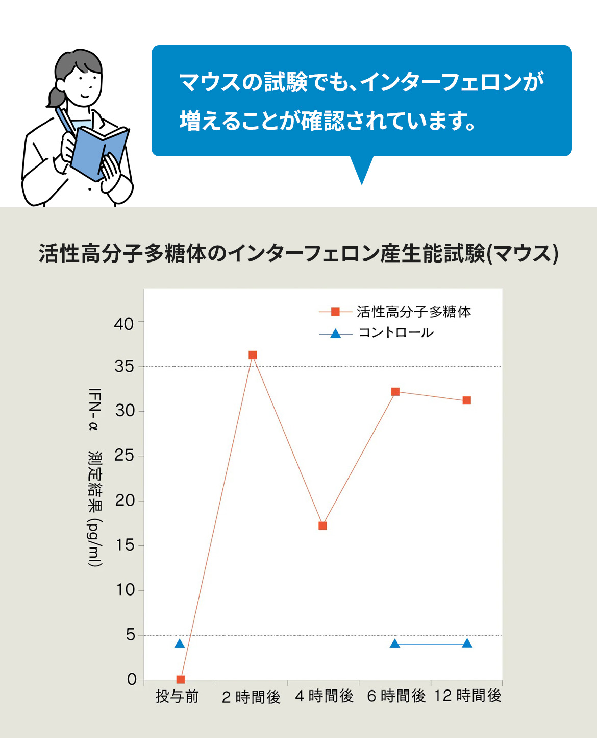 • 掲載しているグラフ・図表は、活性高分子多糖体に関する基礎研究結果の一例を示したものです。
