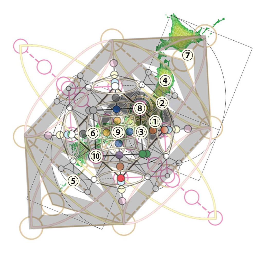 日本列島を黄金比で囲み、海流の動きを重ね合わせることで、